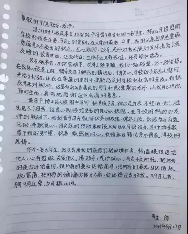 为进一步做好学生教育、资助和帮扶工作,积极践行“学党史、悟思想、办实事、开新局”,切实把“我为群众办实事”落到实处。暑假期间,开云电子登录_开云(中国)结合学校实际情况,立足资助工作岗位,从解决家庭经济困难学生的“急难愁盼”入手,切实做好各项学生资助工作,开展“家校关怀万里行”精准家访活动,由校党委副书记林树生老师带队,通过线上线下相结合的方式,向家庭经济困难学子家中送温暖。