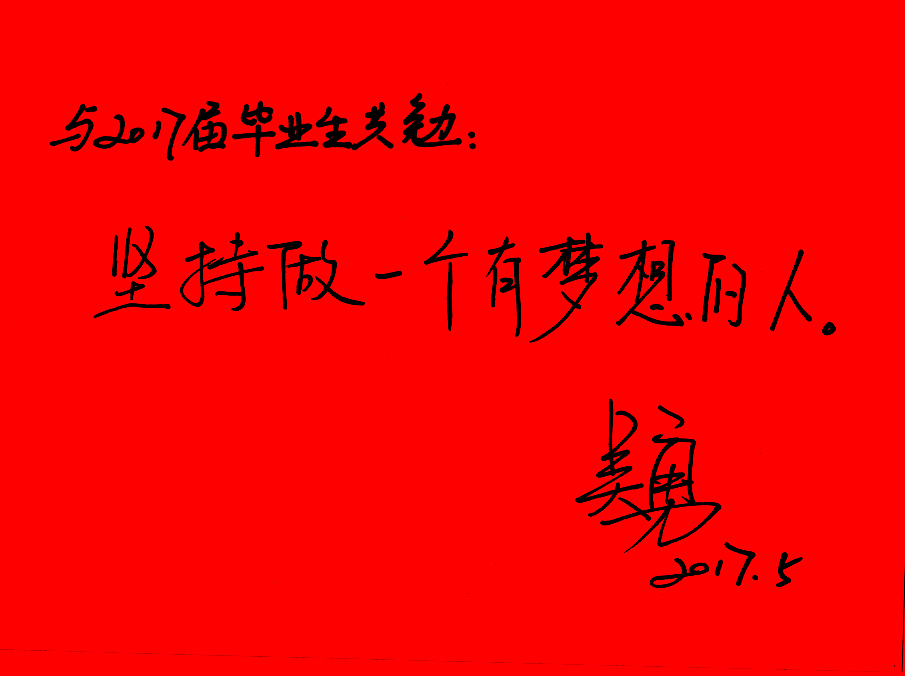 党委常务副书记林明旭为2017届毕业生寄语题词